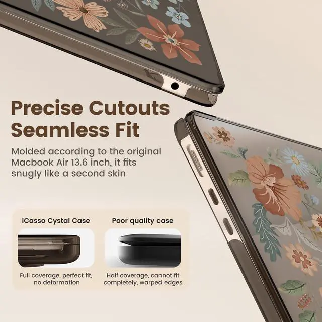 Upgraded Super Crystal Clear Macbook case SerisesUltra-clear I Ultra-thin I FItCompatible Macbook Air 13.6 inch Version 2025 (M4 Model) (A3240) Macbook Air 13.6 inch Version 2024 (M3 Model) (A3113) Macbook Air 13.6 inch- Version 2023-2022 (M2 Model A2681) Please Check and Verify the Model No. A3240 / A3113 / A2681 on the underside of your MacBook before purchase. FeaturesWith a thickness of 1mm, the Ultra Slim 13 inch Macbook air Case does not hinder the MacBook's unique design. Double HD Clarity, Sleek