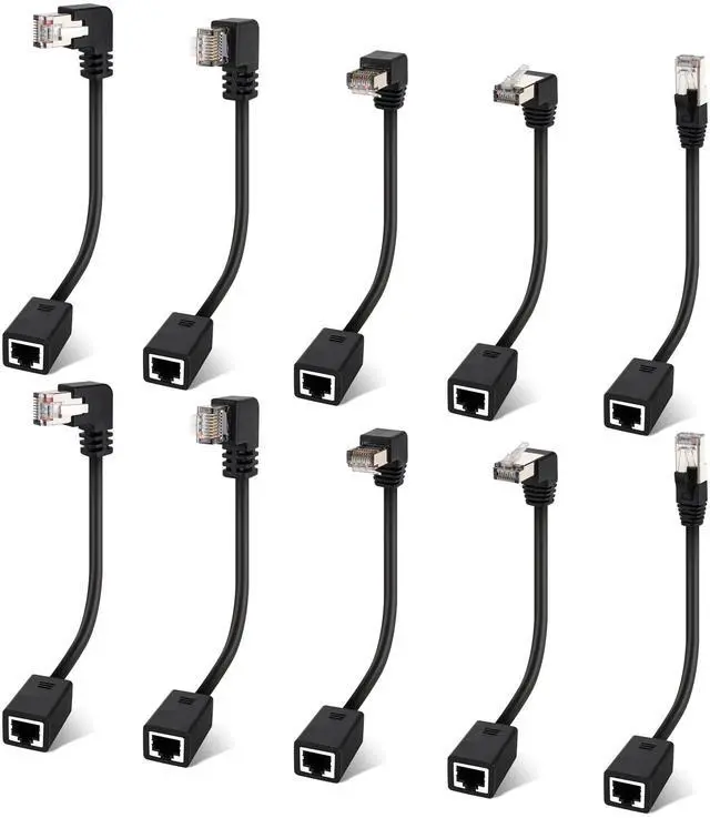 Cat 6 Ethernet Extension Cable 10 PackMultiple AnglesUP/Down/Left/Right/Straight, Cat6 RJ45 Network LAN Patch Cord Adapter, FTP Shielded Male to Female Connector, Supports CAT5E/CAT5-2 Feet