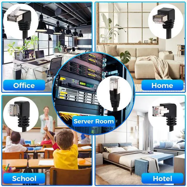 Multi Angle CAT6 Extender ConnectorMulti angle design (UP/Down/Left/Right/Straight) avoids excessive bending of cables in narrow spaces such as walls, furniture, or network cabinets, effectively protecting Ethernet ports from wear and tear.
