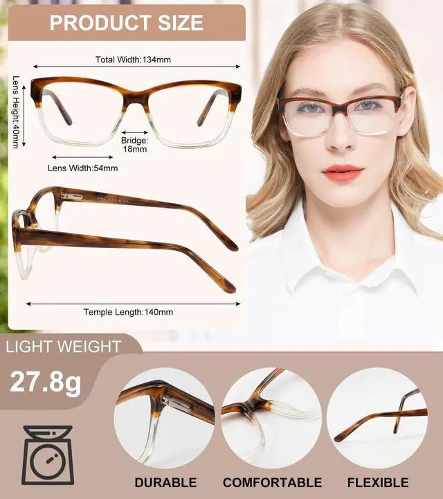^^ Sturdy quality: Using high-quality acetate frame, we create a comfortable wearing experience for you. Flexible metal spring hinge wont pinch your head, and adjustable temples can be bent and adjusted to a comfortable arc. Durable, scratch resistant, with a texture that enhances high-end taste and delight charm to daily wear.