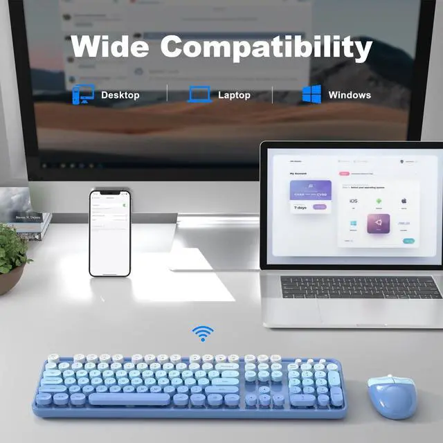 Detachable Colorful KeycapsEnhance your typing comfort with our colorful wireless keyboard and mouse set, featuring vintage typewriter-inspired rounded keycaps. Inject vibrancy into your workspace with vibrant colors, breaking away from traditional monotony.