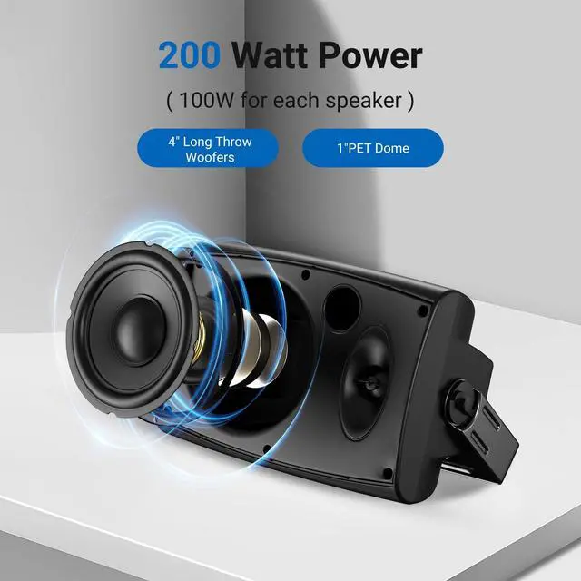 Advanced Bluetooth 5.3 TechnologyCrush dropouts with 65ft rage-free wireless range - latest Bluetooth 5.3 locks onto smartphones/tablets faster than a Rottweiler on a steak. Stream lossless audio across your patio, pool deck, or backyard jungle gym without a single skip. Ideal for outdoor bluetooth speakers that keep the party alive while you roam freely ^^ Exceptional Sound QualityDual 100W drivers blast through 4" woofer cannons (injection-molded PP cones) and razor-sharp 1" PET tweeters. Hear every bass drop in the pool and acoustic details on the porch - like front-row festival sound for your bluetooth outdoor speakers ^^ Superior Waterproof and Durable DesignBuilt IP44-rated for weather-resistant durability, this rugged outdoor speaker pumps 360 immersive audio through rain, splashes, and dust, transforming hikes, poolside hangs, and stormy campouts into nonstop bass-driven adventures.
