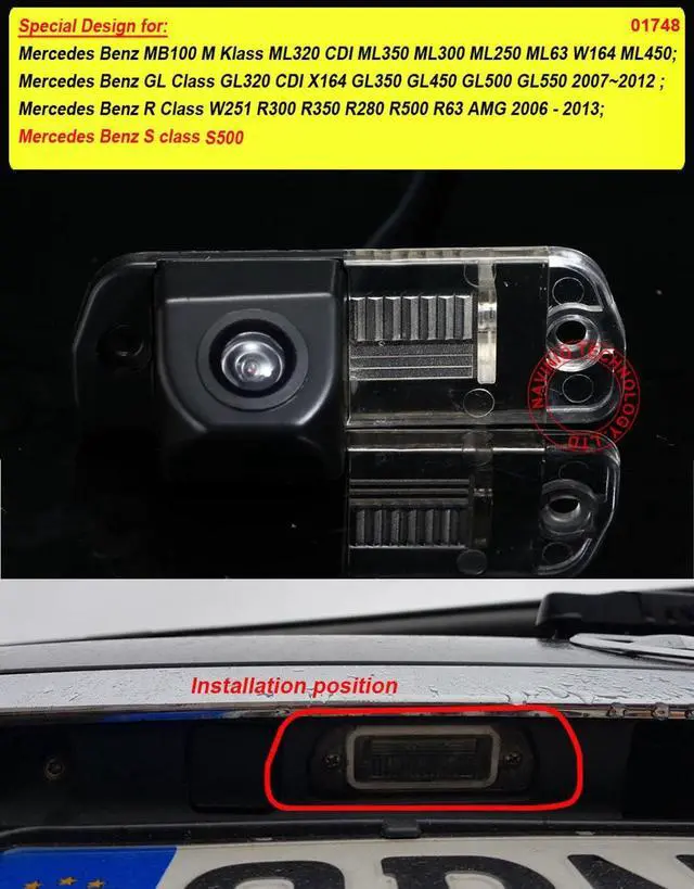 Dear customer, please must check the camera size and appearance before place a order, see if can fit your car license light place size and appearance! Because the same car model in different countries may have some difference, please check the camera size and compare the installation of your car carefully to avoid mistake. This product could fit for all below models as expected: Replacement for Mercedes Benz MB100 M Klass ML320 CDI ML350 ML300 ML 250 ML63 W164 ML450; /p>Replacement for Mercedes Benz GL Class GL320 CDI X164 GL 350 GL 450 GL500 GL 550 2007~2012; /p>Replacement for Mercedes Benz R Class W251 R300 R350 R280 R500 R63 AMG 2006 - 2013;