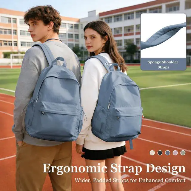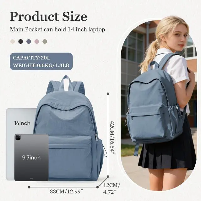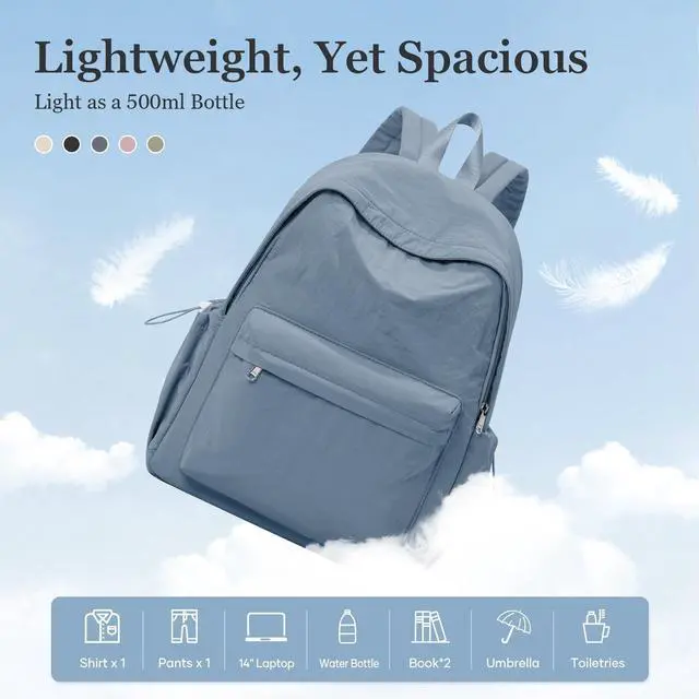 These functional pockets allow you to organize your items more neatly. ^^ This is a classic and minimalist backpack with a large-capacity main compartment that can hold 2-3 days' worth of clothes or items such as books and daily essentials. The backpack is available in various colors, suitable for both men and women, making it a great choice for work, Short-travelling, casual, fitness, hiking, and outdoor activities. ^^ The backpack is made of lightweight, abrasion-resistant, splash-resistant nylon fabric, providing effective protection against light rain and splashes (please note that the backpack should not be exposed to heavy rain for extended periods).