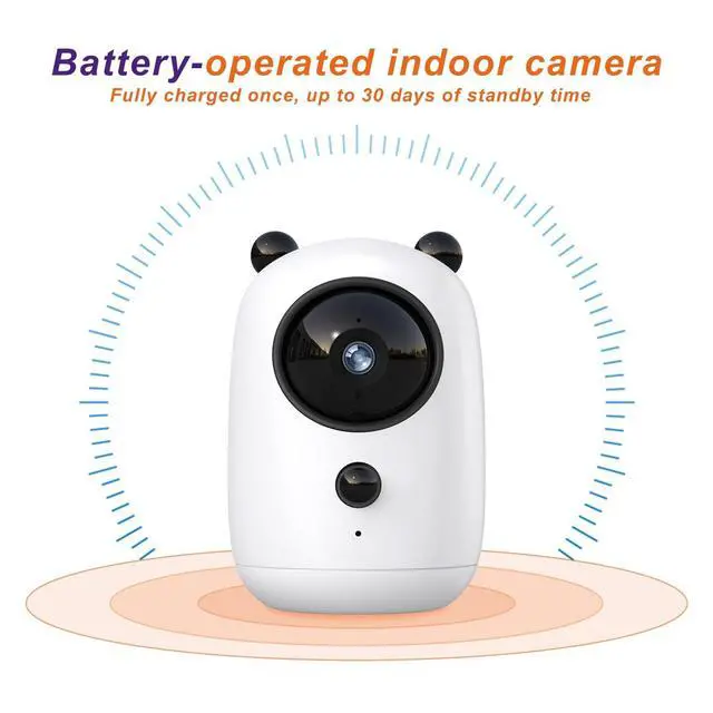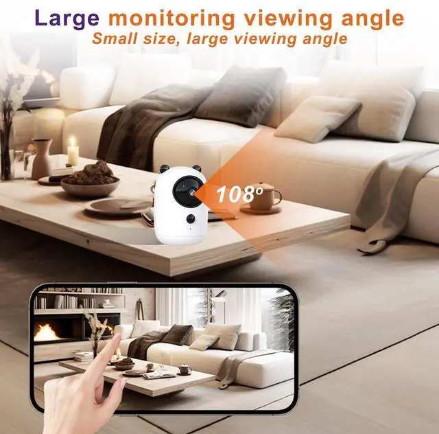 Wi-Fi connectivity and built-in power: Outdoor security cameras use the wider 2.4G Wi-Fi (5GHz not supported). Built-in 5200mA battery for wireless use and long battery life ^^ Intelligent Pan & Advanced Night Vision: The 135 wide-angle enhanced lens combines a 355 horizontal and 60 vertical swivel range for 360View and a 6x digital zoom to zoom in on the video for a clear view of details. This indoor security camera features enhanced night vision with an effective range of up to 33 feet ^^ Smart Siren & 24/7