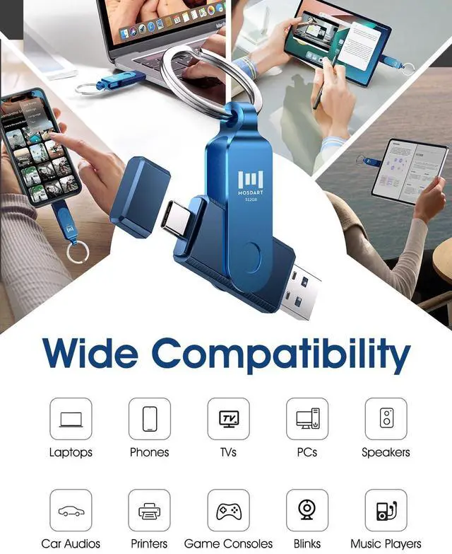 Endless flexibility: Our 512GB USB 3.2 Type-C dual flash drive lets you effortlessly transfer files between Android smartphones, tablets, and computers. No more frustration with compatibility issues! ^^