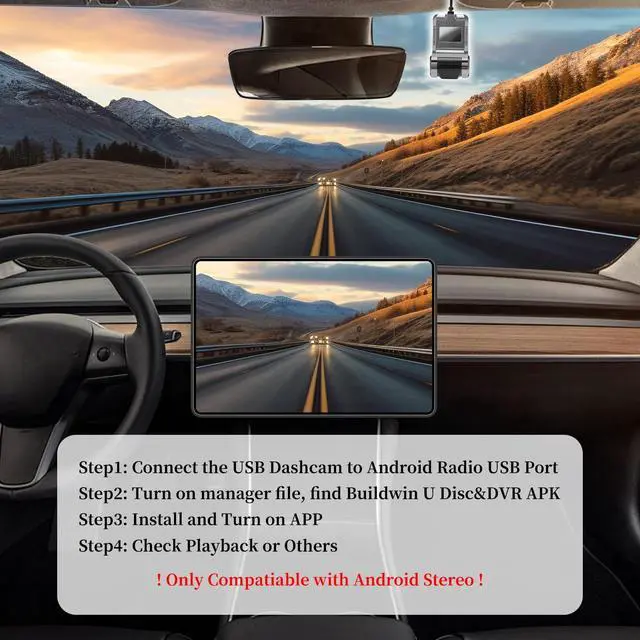 Compact Design & Easy Installation: This dash cam features a slim, compact design ( 3.5 x 1.8 x 1.4 in) that wont obstruct your view, making it perfect for any vehicle. The installation file of the HD DVR app has been preloaded in the front camera, named "uCarDvr ", just click and install it if your Android car stereo does not have it. Enjoy hassle-free protection on the road. ^^
