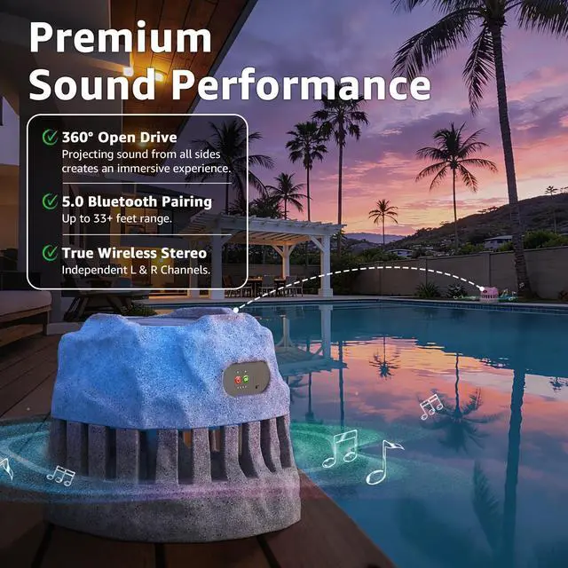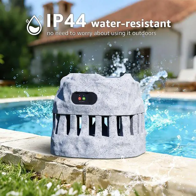 IP44 WATERPROOF OUTDOOR SPEAKER: Featuring a standard IP44 waterproof design and a robust housing, this outdoor speaker can function reliably in rain, snow, or under intense sunlight. With its rock-inspired aesthetic, it blends seamlessly into your poolside, garden, patio, or backyard while delivering rich, high-quality sound. ^^