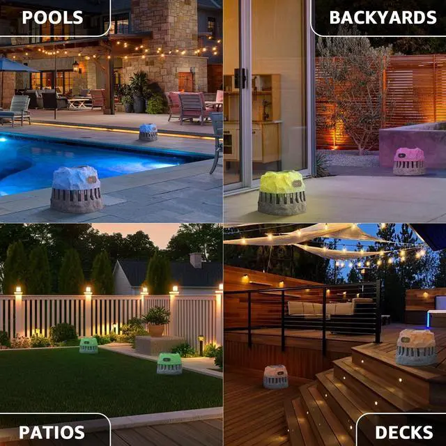 ROCK SPEAKER WITH LIGHTS: These rock-like speakers are also a light-emitting speaker. Because they are equipped with RGB LED lights! While you enjoy the music, the rock speakers will always change color slowly along with the music! This outdoor bluetooth speakers with lights will add a lot of fun to your garden, patio or backyard, poolside ^^ 360 SURROUND DESIGN +