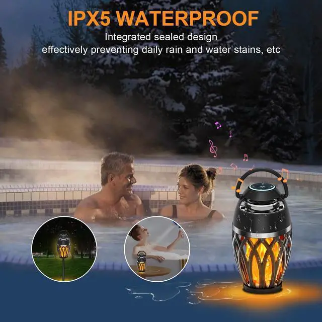 (Note: DON'T submerge it in water) ^^ Bluetooth 5.3 Wireless SpeakerBuilt-in latest Bluetooth 5.3 chip provides rapid pairing and stable connection, streaming your music playlist easily and maximum connection distance is 33ft apart. If paring 2 Bluetooth speakers, will bring you a stereo HD sound, making your parties or outdoor events more vibes and space-filling. ^^ Torch Speaker Purchase ServiceSpeakers offer a no-worry 24-month New Replacement Exchange or FULLY REFUND for any product quality issues to these outdoor lantern speakers. We will always stand behind you and reslove your issues within 24 hours.