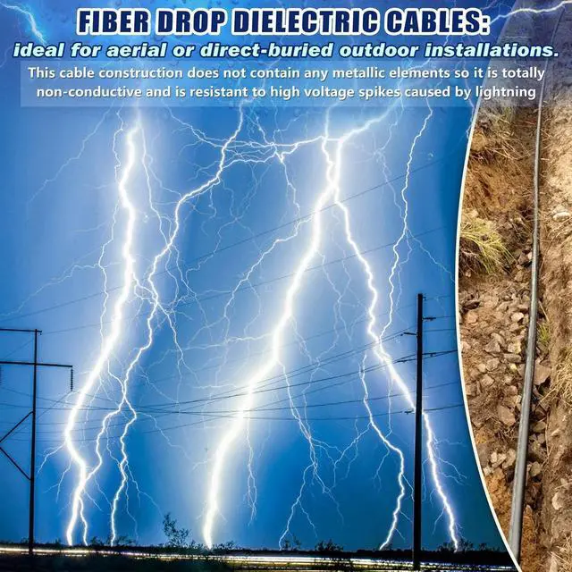 All-Dielectric Design Singlemode Fiber: No-metallic elements used, totally non-conductive, not afraid of lightning-strikes. Ideal for duct/buried/aerial outdoor applications.