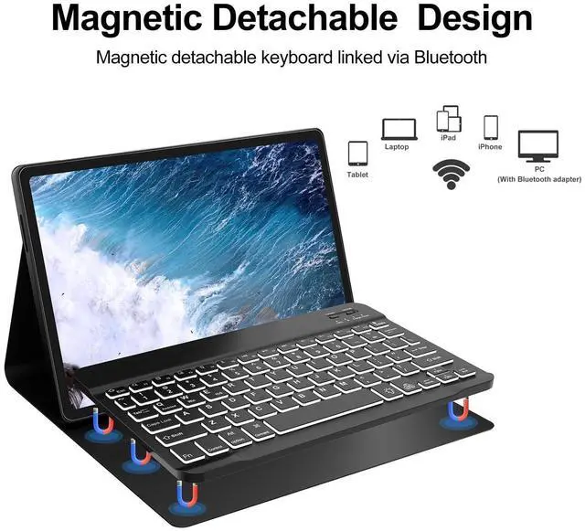 (Note: S Pen not included) ^^ 7-Color Backlit and 3-Brightness LevelsGalaxy Tab S8 keyboard has 7 backlight colors and 3 brightness levels, so you can type smoothly even in the dark. You only need to press the corresponding button to switch to the light you want. ^^ Magnetic Detachable Bluetooth KeyboardGalaxy Tab S9 keyboard can be attached to Samsung Galaxy S8 case and can freely change angles and positions. It can be removed when not in use, allowing you to freely switch between a lightweight laptop and tablet. ^^ Automatic Sleep Wake-upSamsung Galaxy Tab S9 keyboard case automatically sleeps or wakes up when opened or closed, greatly protecting and saving battery life. ^^ Long Battery LifeSamsung Tab S8 keyboard case can work continuously for 75 hours under normal use with the backlight off after 4 hours of charging. ^^ Full Body ProtectionThe premium composition leather exterior of Galaxy Tab S7 case protects your tablet from accidental dropping and bumps. Soft anti-slip interior protects your tablet from being scratched. ^^ Precise Cutout DesignThe precise cutout of Galaxy S7 case allows full access to all ports: user interface, sensors, speakers, microphone and cameras. ^^ Strong After-sales SupportWe will provide you 12-month warranty and 30-day money-back guarantee since your purchase our Samsung Tab S9 keyboard case/Galaxy Tab S8 keyboard case/Galaxy Tab S7 keyboard case date. At the same time, if you have any question and need, please feel free to contact us, we will solve your problem within 24 hours.