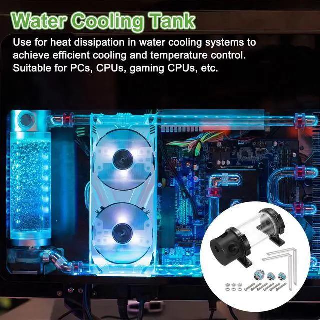 Efficient Cooling: Help lower hardware temperatures, improve performance, and extend lifespan. ^^ Properly install the water cooling reservoir radiator into the computer water cooling system for effective heat dissipation, ensuring secure connections. ^^ Regularly inspect the tank, keeping it clean and free from debris.