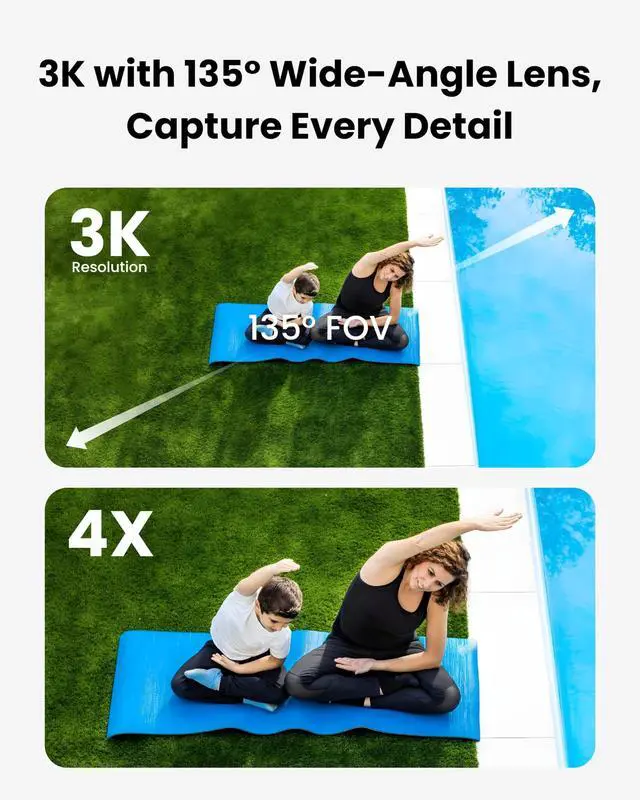 Outdoor Security: Built-in 5200mAh rechargeable battery combined with an efficient solar panel provides continuous power with minimal maintenance. No wiring, no outlets required, making it ideal for front doors, yards, garages, and other off-electric areas. Enjoy flexible placement and reliable outdoor protection. ^^ 5MP Ultra HD & Full-Color Night Vision Clear Day and