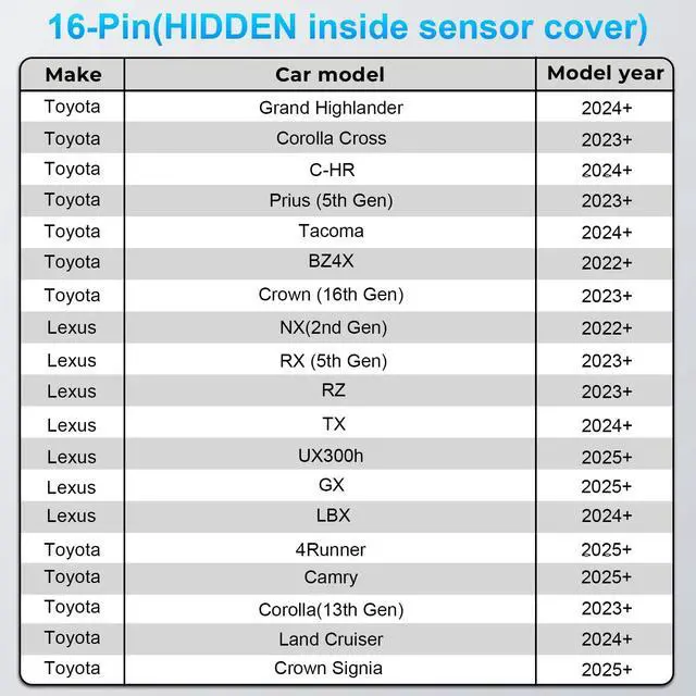 1 Important Compatibility Tips Compatible only with Toyota & Lexus vehicles equipped with TSS 3.0 Lane Assist and a 16-pin Lane Assist Module port. Connection must be made to the 16-pin port both white and black 16-pin connectors are supported.