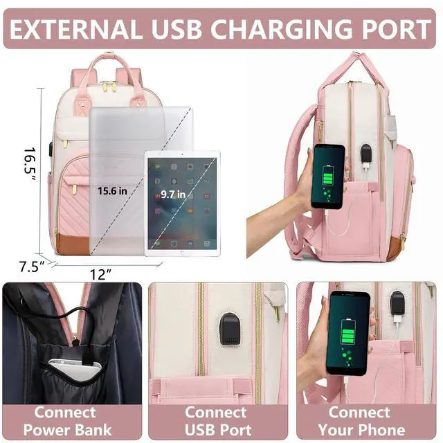 Waterproof teacher backpack fits under the seat also meets airline carry-on requirements. Adjustable shoulder strap with mesh fabric for breath ability, it can distribute the weight of book bag decently on our back, providing you with more comfort during your trip ^^ Work Backpacks with USB Charging Port- The college back pack have an external USB charging port and built-in charging cable which can be easily connected wherever you are. It is convenient and comfortable for you (POWER BANK IS NOT INCLUDED). This casual womens book bags is the best choice for you. ^^ Versatile & Practical Backpack- The causal backpack is equipped with an anti-theft pocket on the back and anti-theft zippers on main compartment which protects your valuable items from thieves.
