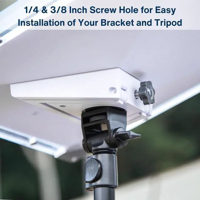 Tripod Mount: Includes a 38mm hole and screw for attaching to poles or support rods, plus 1/4" and 3/8" threaded holes for connecting to camera tripods.
