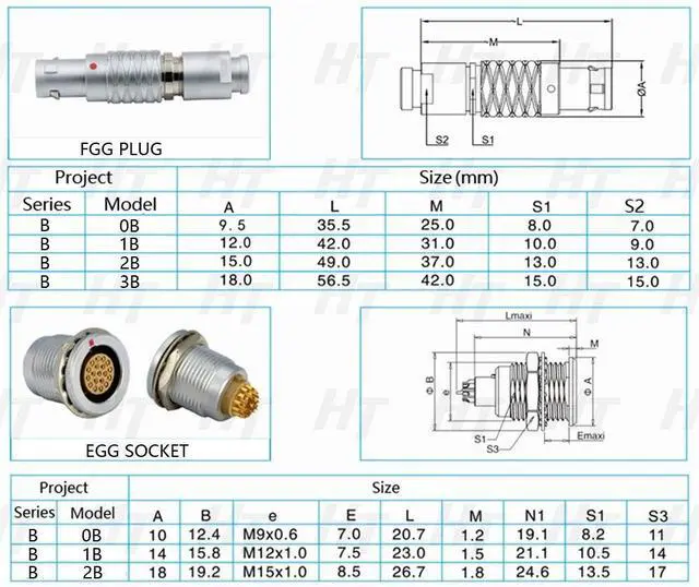 Compatible for LEMO 0B FGG EGG FSG FHG PHG connectors.