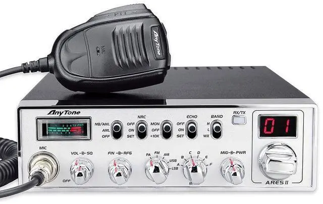 AnyTone ARES II 10 meter Radio default frequency is 28.000 - 29.695M hz, 40 channels (programmable) in each band, Weather Channel 140-170MHz, with PA/FM/AM/USB/LSB mode. Programmable Frequency. Digital Noise Reducuon for RX & TX. VOX Function. Power output Max FM 40W, AM 12W, SSB 35W. Echo Function. CTCSS/DCS Code. Echo Function. ^^ It is a very good high power 10 meter mobile radio with PWR, RX RSSI S-Meter, PC programmable, SQ, ASQ Function, RF Gain Adjustment, Mike Gain Adjustment, RF PWR Adjustment, Programmable RB, NB/ANL Function, Offset Function, Beep Voice Prompt, +10KHz Function, TOT Function, HI-CUT Function, Busy channel lock, Monitor Function, LED Brightness Adjustment, SWR Protection, Voltage Protection, VOX Function, RX noise reduction, TX noise reduction, NPC function, SCAN function.
