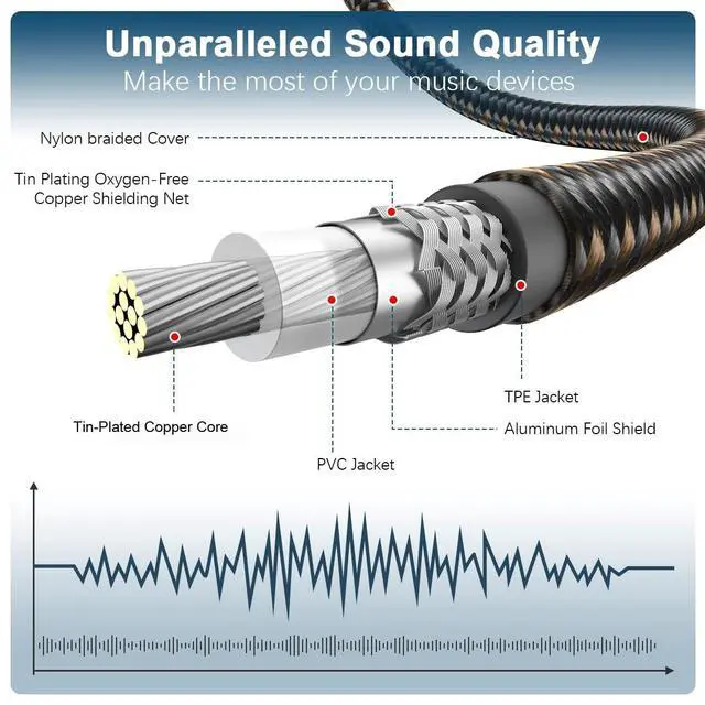 Professional audio quality RCA cables for premium left/right audio signal transfer from your home stereo, audio receiver, DVD or Bluray player, works on all types of digital coaxial/rca audio ports. ^^ 24K gold-plated connector, copper clad center conductor, Dielectric insulation, nylon braid and dual shielding, for natural sounds. Low energy loss and maximum rejection of the hum/static from RF and EM interference. ^^ RCA male cable connectors allow you to use the RCA audio cable with any standard stereo left/right output giving you crystal clear stereo sound and Hi-Fi audio for your home stereo or theater system.