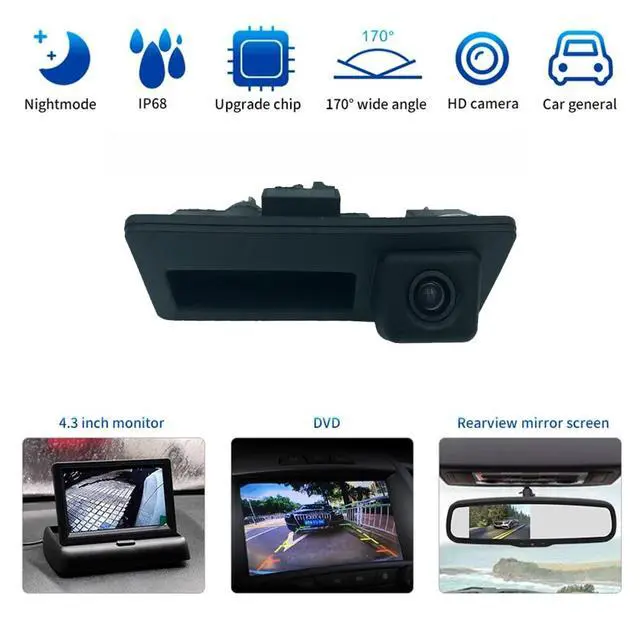 Easy installation: Mount the camera to car's vehicle trunk handle position. Do not destroy the original car style, retain the original car trunk switch function.
