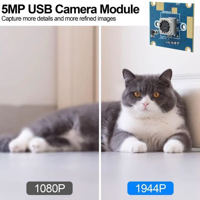 Max resolution: 2592 (H) *1944 (V) ^^ Autofocus 60 Degree LensMMlove mini embedded camera module with wide 60 degree autofocus lens, enjoy razor-sharp high sharpness in many environment, much faster and easier to focusing correctly than fixed focus camera. Fixed exposure and auto white balance, sharp image and accurate color reproduction ^^ Easy Plug&Play This usb camera module is easy to use, only plug camera into computer USB port and running the software can make video display and recording work. No drive installation is required. High speed USB 2.0 interface, greatly improved the working efficiency ^^ Wide Applications5MP mini 25mmx30mm camera module is good to use in embedded project, in most hidden and narrow position for smart TV, live streaming, security monitoring systems, machinery equipment, all-in-one machine, robot, scanner, industrial machine, medical auxiliary equipment, ATM machine, etc ^^ Best Universal CompatibilityThe mini usb camera module designed with standard UVC protocol USB connector, can widely works with Win XP/Vista/Win7/Win8/ Linux with UVC(above linux- 2.6. 26)/MAC-OS X 10.4. 8 or later/Android 4.0 or above with UVC