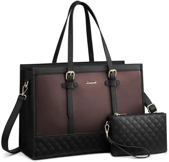 LOVEVOOK Laptop Tote Bag for Women,15.6 Inch Vintage Laptop Bag with Clutch Purse, Large Capacity Leather Work Bag, Computer Bag Office Business Briefcase, Casual Handbag for Travel College Teacher