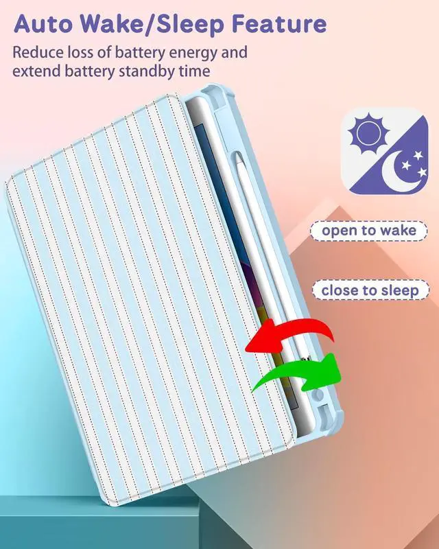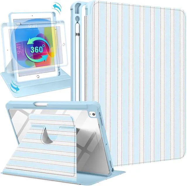 Auto Sleep/Wake: Built-in magnetic strip, this for iPad 7/8/9/ case 10.2 inch with the smart funtion of auto sleep/wake, no wasting the power energy and extend your tablet standby time ^^ 360