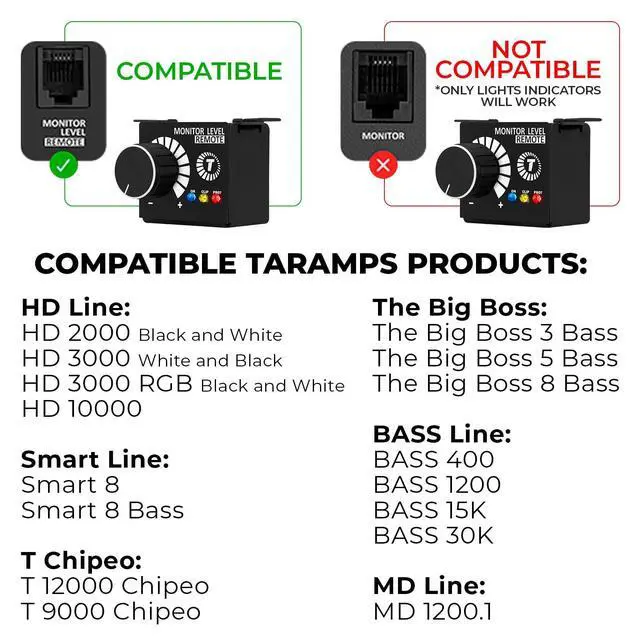 ^^ Exclusive Compatibility: Specifically engineered for Taramps amplifiers that have "Monitor Level Remote" written on the input ^^