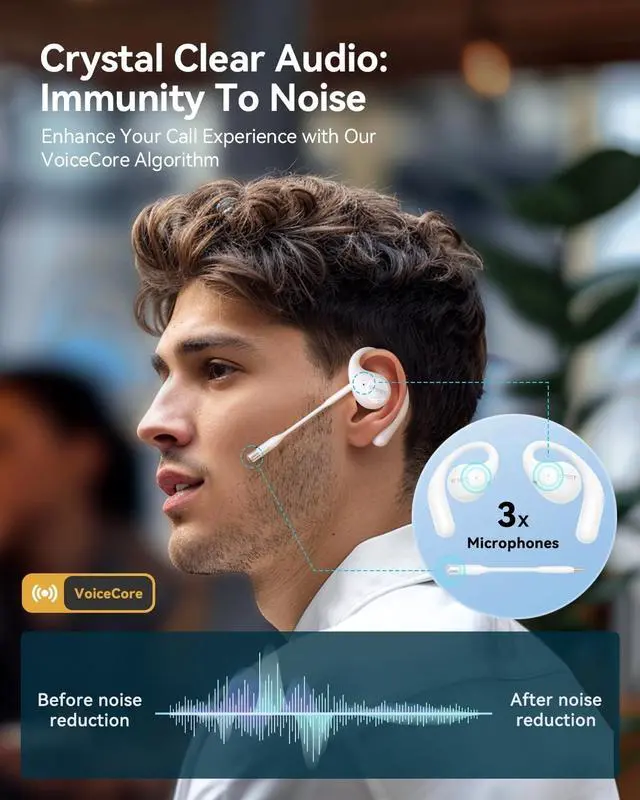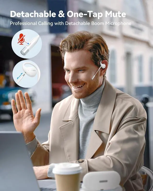 Open-Ear Design: The EMEET AirFlow open-ear headphones utilize advanced air conduction technology, meticulously crafted based on the analysis of 2, 560 ear shapes. Inspired by the golden spiral and ergonomically designed with ultra-soft silicone pads, they offer an unparalleled comfortable listening experience. ^^ Professional Calling with Detachable Boom Microphones & Mute Function: Equipped with the cutting-edge VoiceCore algorithm, the headsets reduce dual-channel noise for professional-grade call clarity. Plus, a convenient one-click mute feature ensures your privacy is safeguarded at all times.