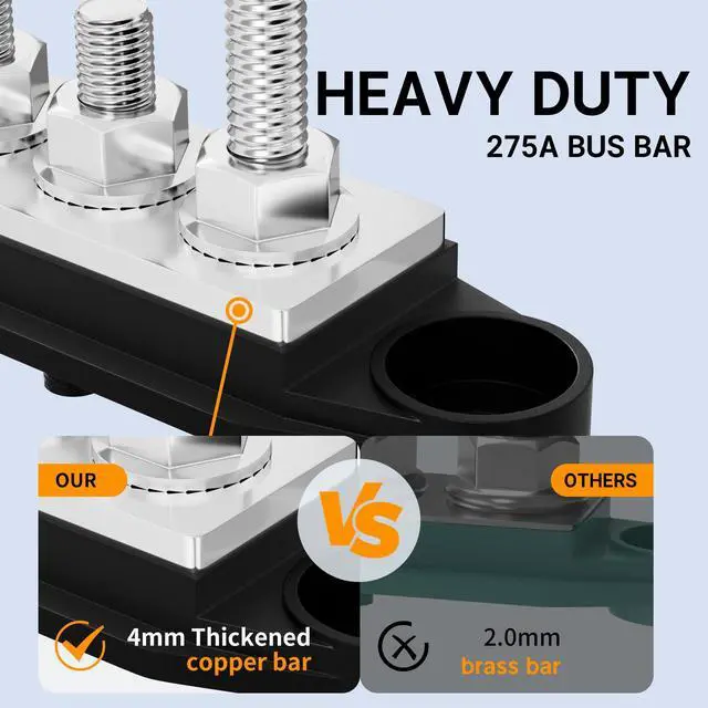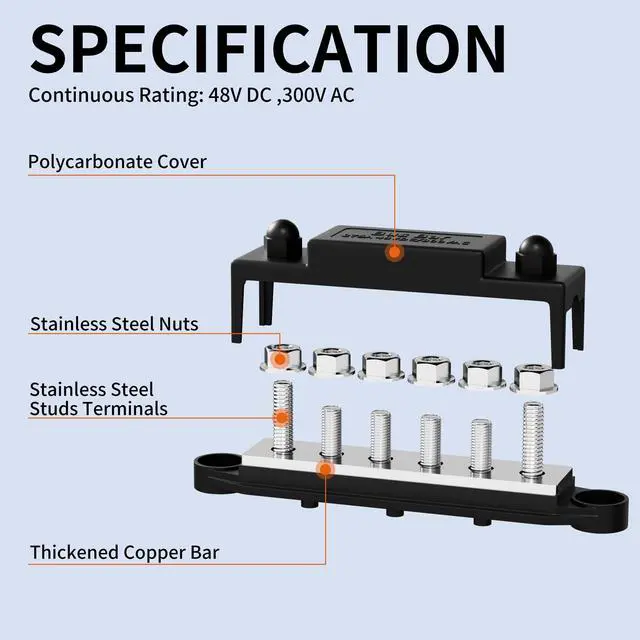 Heavy Duty: Power distribution block can deal with 275 Amp continuous amperage at Max 300V AC or 48V DC voltage ^^