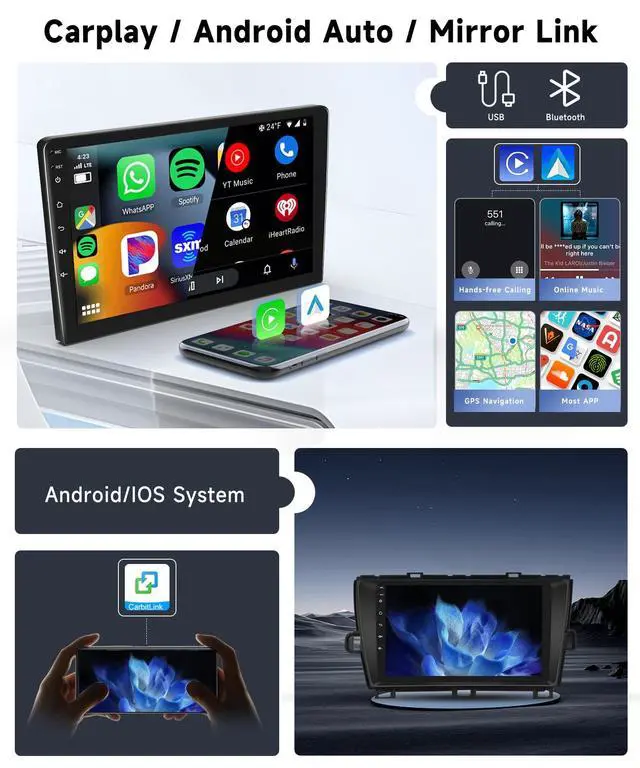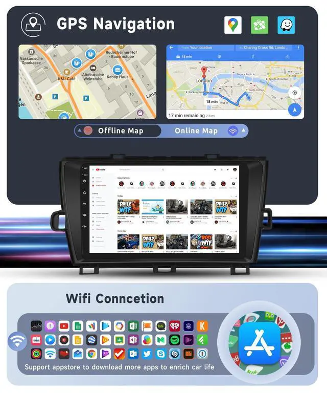 • Carplay and Android Auto: This touch screen car stereo for Toyota Prius supports wireless and wired connections for CarPlay and Android Auto. Through bluetooth or original USB cable,it provides instant access to calls, maps, music, and more. It also supports superior voice control through Siri
