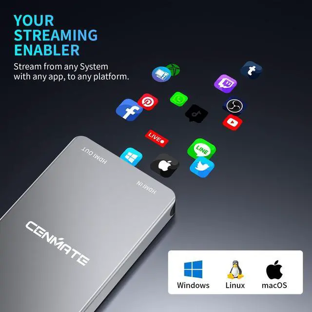 MacOS system users can use QuickTime Player for video recording/capture. Windows system users can use the built-in screen recording function on their computers. Professional capture/recording/streaming software such as OBS/Vmix/Potplayer can also be used. ^^ Detailed Instruction Manual and Quality AssuranceOur instruction manual answers most of your questions about this product in detail. Cenmate provides technical support. If you have any questions about the product, please don't hesitate to contact us, reply and solve your problem within 24 hours. ^^ What You GetCENMATE 4K video capture card x 1, 5FT HDMI cable x 1, 3.3FT 2 in 1 USB A/ C cable x 1, and user manual.