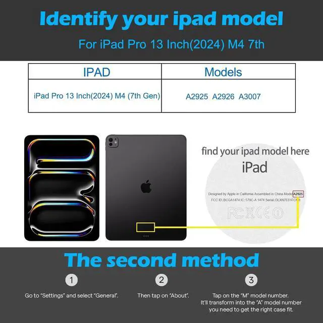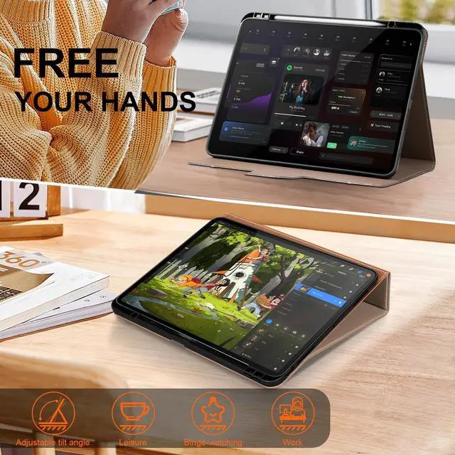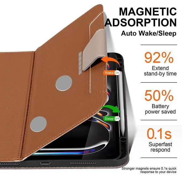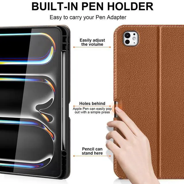 Precise M4 Model Compatibility Designed exclusively for 2024 iPad Pro 13-inch (M4) models A2925/A2926/A3007. Not compatible with any other iPad models. Please verify your model number (located on the back of your iPad) before purchase. ^^ Premium Business-Grade Protection Crafted with high-quality microfiber leather offering luxurious texture and professional appearance. Features scratch-resistant, spill-proof surface that's easy to maintain while providing sophisticated business aesthetics. ^^ Smart Auto Wake/Sleep & Pencil Integration Built-in magnets enable instant wake/sleep function. Fully compatible with Apple Pencil for secure storage, charging, and pairing. Precision cutouts maintain full access to all ports and controls.