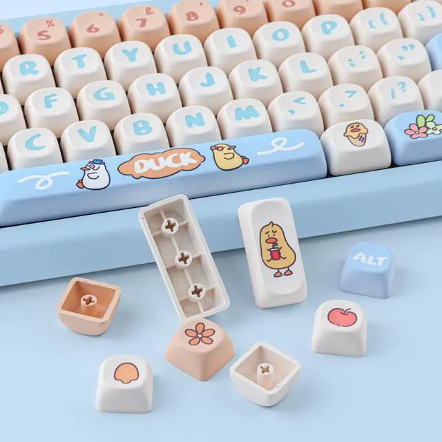 Duck Cute Keycap: Advanced dye-sublimation technology allows the color to penetrate into the keycaps, making the font and pattern on the cat keycaps very clear and beautiful, giving you a premium experience ^^