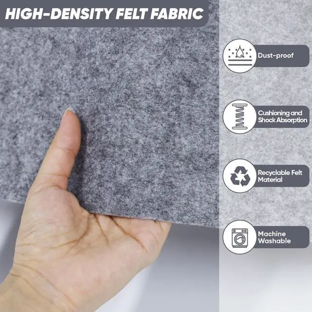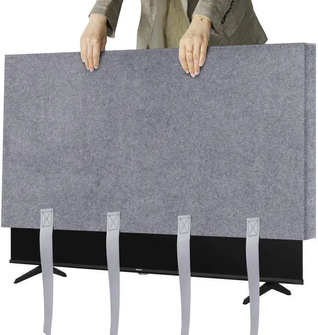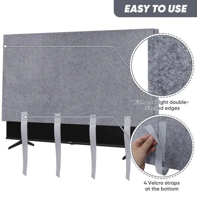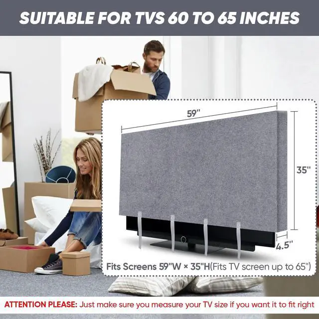 High Quality Felt - The TV moving cover is made of high-density tear-resistant felt fabric. The 0.4 inch thickened design effectively prevents scratches, moisture and dust, it can absorb shock and vibration during transportation, fully protecting the large-screen TV for safe transportation ^^ 65-inch TV Moving Cover - Designed for 60-65-inch flat-panel TVs ( 58.5 x 35 x 4.5 inches), it can also be used as a dust cover for daily life. We have other two size for 50-55-inch TVs and for 70-75-inch TVs. Please measure your TV to ensure a good match before purchasing ^^ Convenient to Use - This TV cover features a convenient slip-on design, four straps at the bottom for quick attachment to your TV.