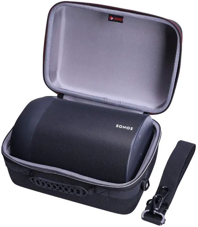 PROTECTION - Hard EVA material is shockproof and dustproof and waterproof to protect your Sonos Move 2/1 Battery Powered Smart Speaker from impacts and splashes. ^^ LUXURY AND FASHIONABLE - Build-in super quality villus reflects superior taste and ensures a long-lasting performance. ^^ CONSIDERABLE DESIGN - Smooth but strong zipper gives you a better using experience. 360 degree zip is convenient for you to put your speaker in and out the case. ^^ SUPER CONVENIENT - Comes with comfortable hand strap to carry easily. ^^ PACKING INCLUDE - Case only (the speaker and its accessories are not included)