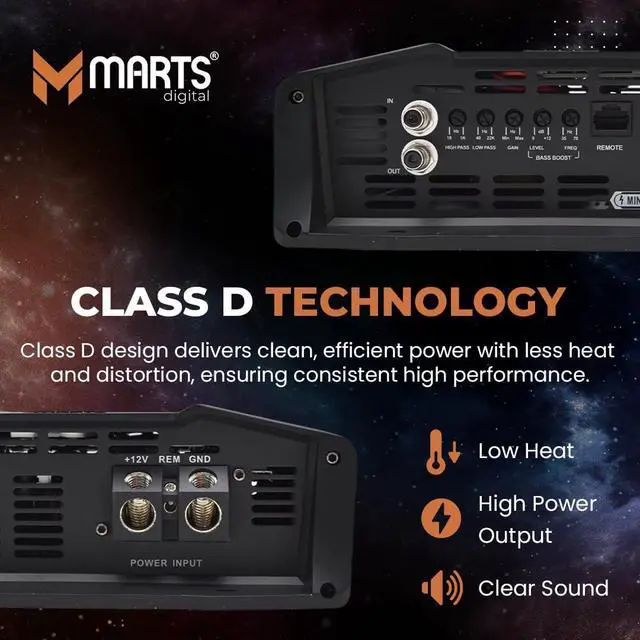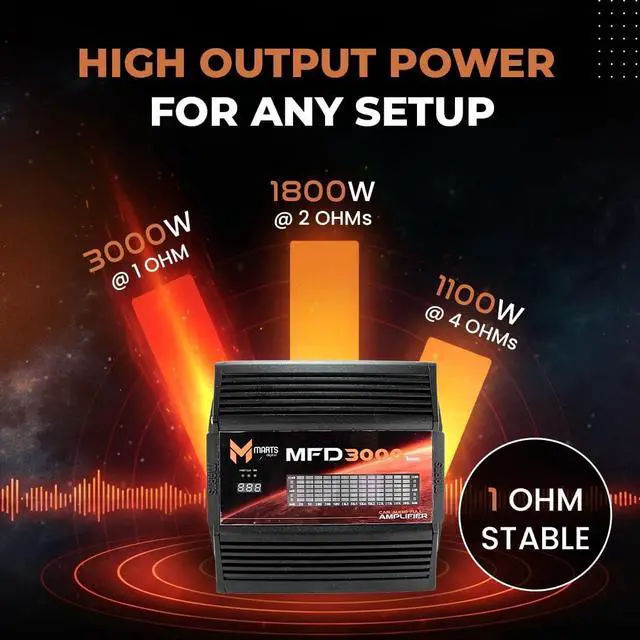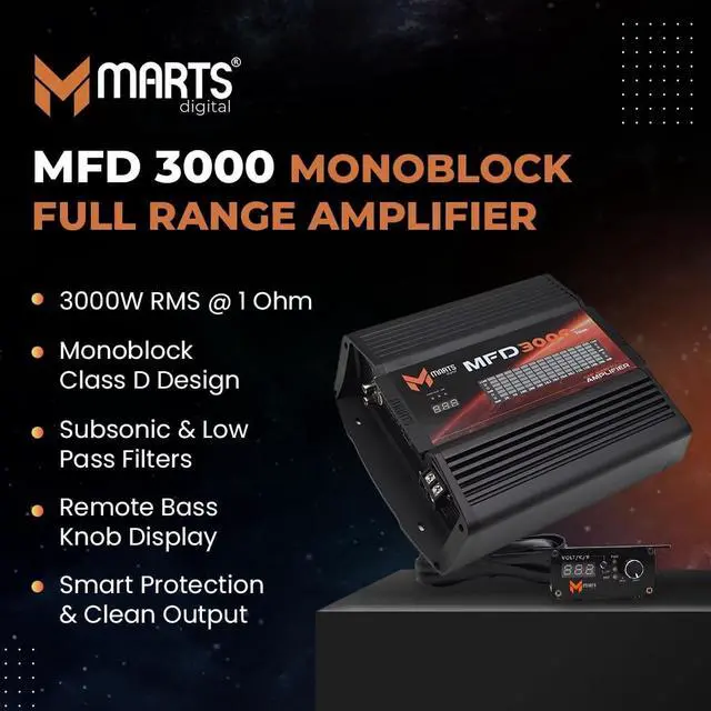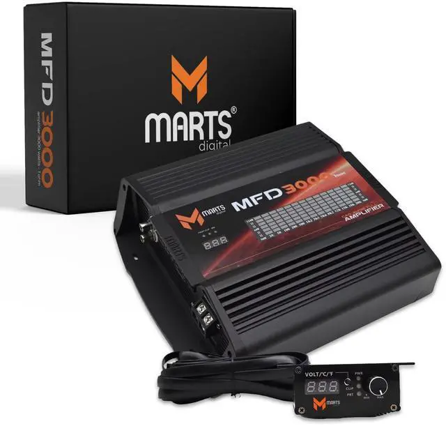 Marts Digital 3000W Class D Full-Range Mono Amplifier MFD3000, 1-Ohm Stable ^^ Compact Car Audio Amp for Subs & Speakers, Clean Power, Bass Boost, Variable LPF/HPF