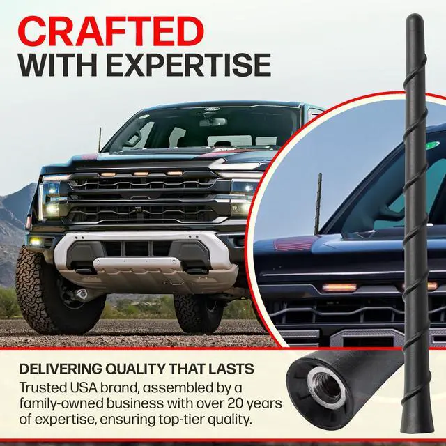 First to market in 2019 with a 1 Year coverage from purchase date. If it breaks, we issue a replacement. Its strength is Tried, Tested and Proven. ^^ SUPERB RECEPTION - German Engineered with a highly conductive internal copper coil, this accessory for Chevrolet Silverado 1500 provides signal strength and clarity. The advanced copper coil materials and precise design ensure you receive clear, consistent reception. While most short antennas are constructed of aluminum or steel, our copper coil is up to 85% more conductive allowing it to pull in stations most short antennas simply dream of.