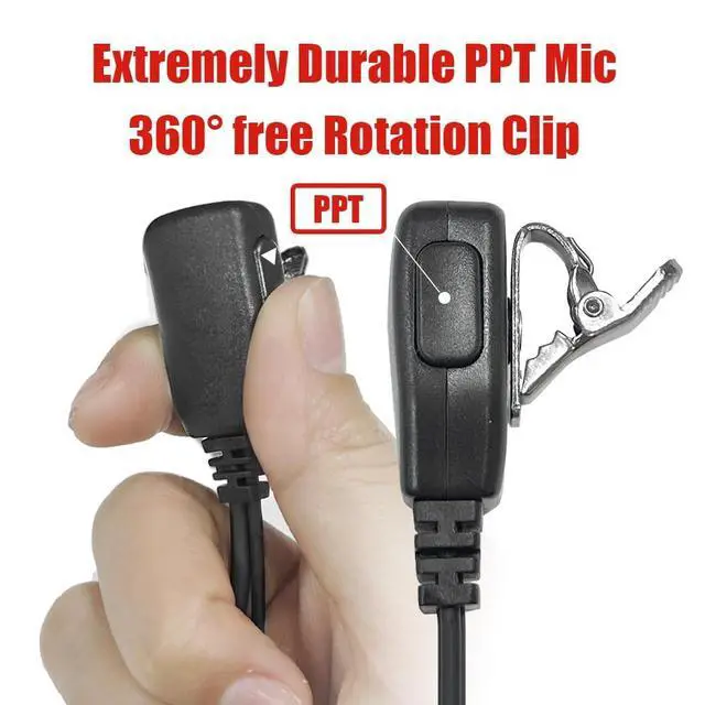 Description The earhook is so comfortable that people forget their existence. ^^ Compatible Walkie TalkieThe two way radio earpiece is compatible with leading radio headset brands Kenwood, Puxing, Wouxun, Baofeng. DON'T WORK for Motorola and Midland radio ^^ Easy to WearFix the PPT and microphone where you want with the clip, free your hands and keep the conversation private ^^ Advanced DesignPTT, sensitive microphone allows you to easily keep in touch with teammates ^^ Application PlacesPerfect for police, army, nightclubs, bars, paintball, security, restaurants, hotels, bodyguard warehouses and noisy environments.