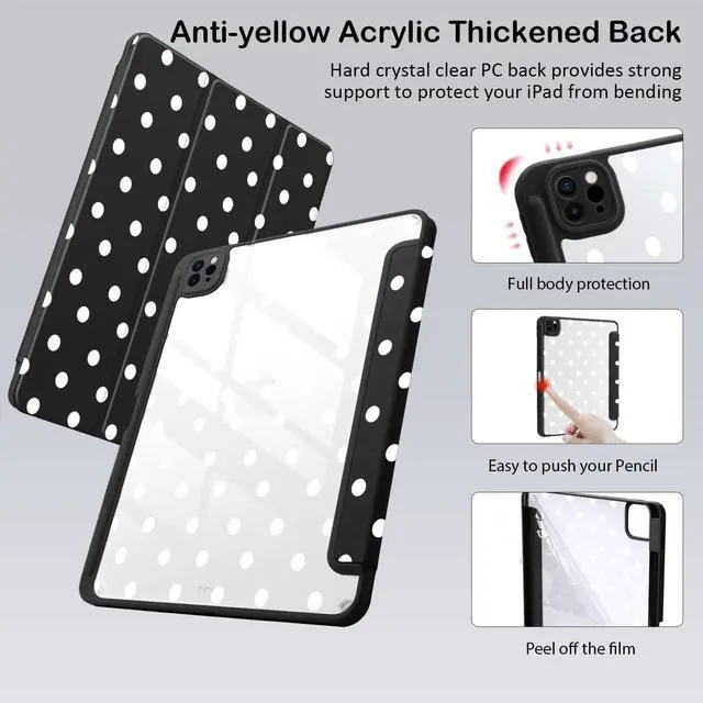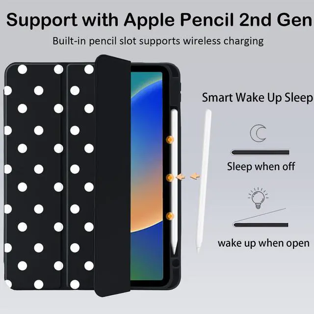 Please Note: The pen holder of this model is located on the left side of the iPad ^^ Well made with PU exterior, microfiber lining and soft silicone frame and clear acrylic back cover, offers full body protection from drops and scratches ^^ Built-in Apple Pencil holder, grab your apple pencil effortlessly whenever you want, keep the apple pencil as safe as your iPad all the time ^^ Cover has flip capability to transform the case into a viewing stand and typing stand. Available in a variety of bright colors and unique pattern ^^ Built-in magnetic strip provides auto sleep / wake function. Precise cutout and design allow easy access to all ports, sensors, speakers, cameras