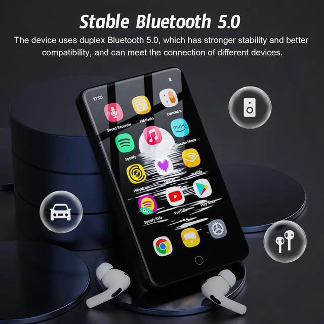 ^^ Duplex Wireless Bluetooth --- The device is equipped with Bluetooth 5.0 chip with bi-directional connection technology, which can stably connect to a variety of Bluetooth devices such as headphones, speakers, car stereos and so on. It allows you to get rid of the cable. ^^ Customise Your MP3 --- The mp3 player with WIFI can install additional apps and upgrade existing apps to the latest version. Meanwhile, you can easily delete the apps you don't need to save memory. ^^ Parental Controls --- Parents can install or remove apps and enable parental controls via Family Link within Settings, which allows you to set passwords, browser access, app access, and more.
