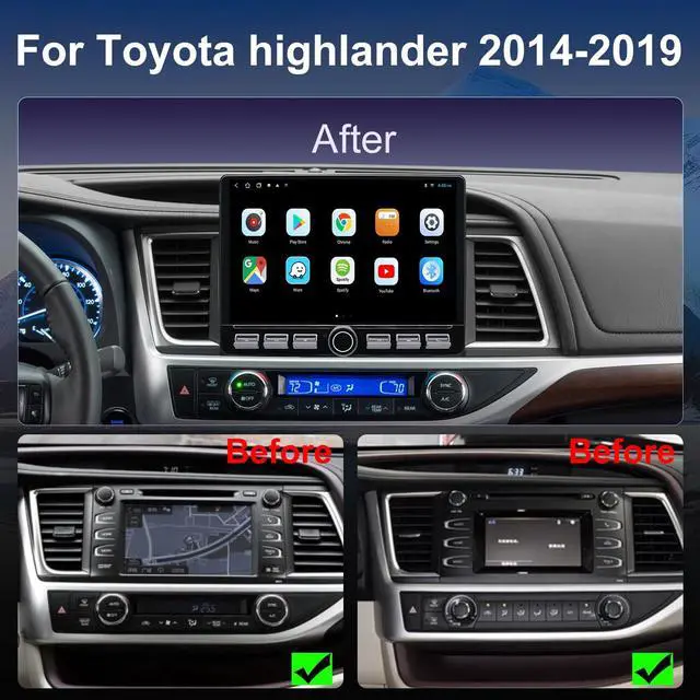 Perfect Fit for Your Toyota Highlander Custom Design for Toyota Highlander 2014 2015 2016 2017 2018 2019. Package come with everything you need to install. No modifications or wiring hacks neededjust plug in and enjoy a factory-fresh upgrade. Clear instruction and user manual support you install the stereo all by yourself. ^^ Wireless Smartphone IntegrationEffortlessly connect your smart Phone or Android device with wireless CarPlay and Android Auto. Access your favorite navigation apps, music playlists, and messaging services directly on the in-dash screenno cables required. Enjoy a clutter-free setup and a safer, more intuitive driving experience.