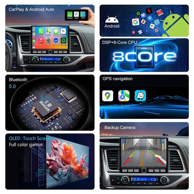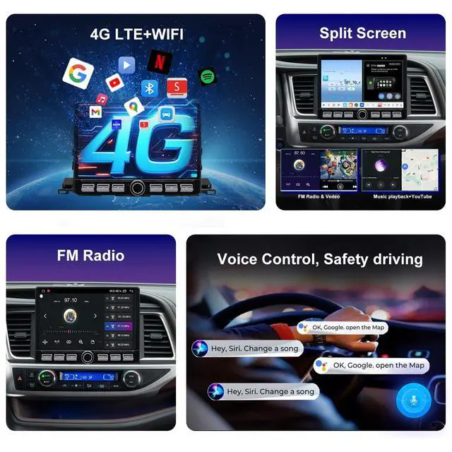 ^^ Unrivaled 4G ConnectivityStay ahead of the traffic and connected on every journey with built-in 4G LTE. Effortlessly stream real-time traffic updates to avoid congestion. Enjoy online music and video with Youtube&Netfilx&Music, entertaining the trip with your family. ^^ Blazing-Fast 8-Core Performance Powered by an 8-core processor, this navigation system delivers instant route calculations and smooth multitasking. Switch between maps, music, and calls without lag, even with multiple apps running. ^^ Cutting-Edge DisplayImmerse yourself in vivid visuals on the high-resolution 9inch QLED screen. Whether youre navigating city streets or rural roads, experience crystal-clear maps, sharp icons, and easy-to-read directions, day or night.