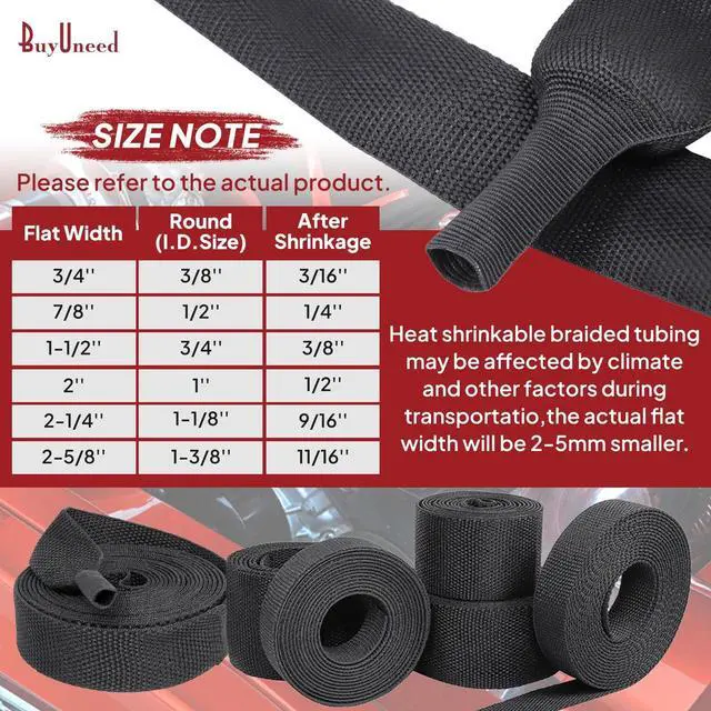 Package Include: 1 x BuyUneed heat shrink braided sleeving fabric tubing.