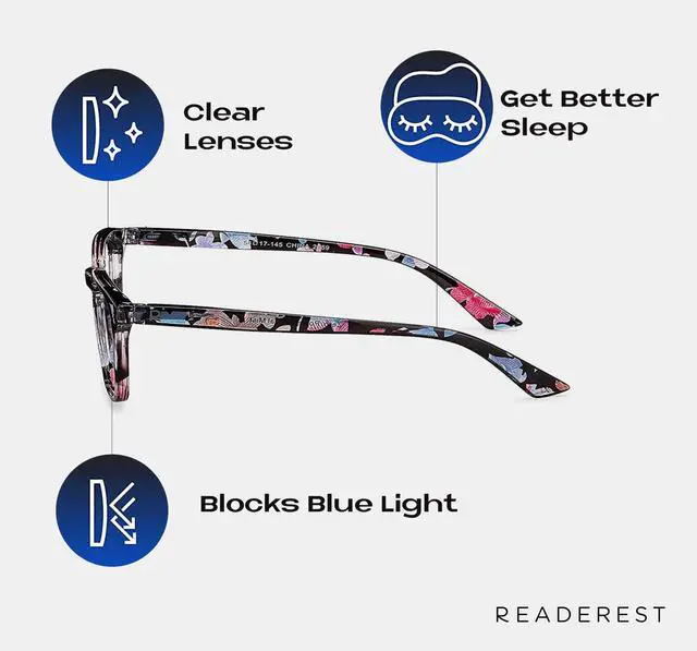 Enjoy clear, comfortable vision with Readerest Blue Light Reading Glasses. These blue light blocking reading glasses with UV protection and anti glare features help reduce eye strain and fatigue. Featuring durable, scratch-resistant lenses, a lightweight spring hinge design, and a stylish frame that suits any setting, these glasses are perfect for reading, work, or daily wear.