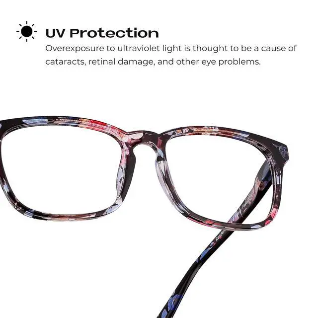 DescriptionEnjoy clear, comfortable vision with Readerest Blue Light Reading Glasses. These blue light blocking reading glasses with UV protection and anti glare features help reduce eye strain and fatigue. Featuring durable, scratch-resistant lenses, a lightweight spring hinge design, and a stylish frame that suits any setting, these glasses are perfect for reading, work, or daily wear.
