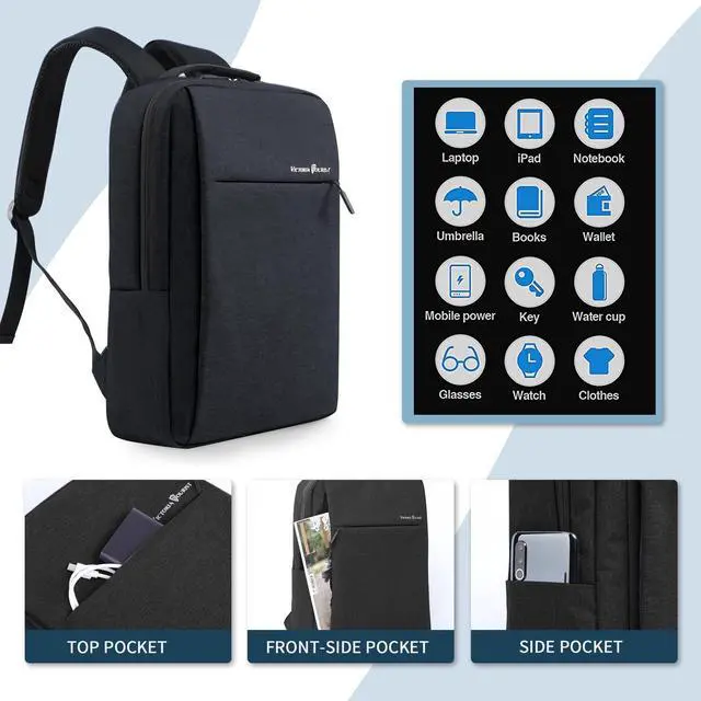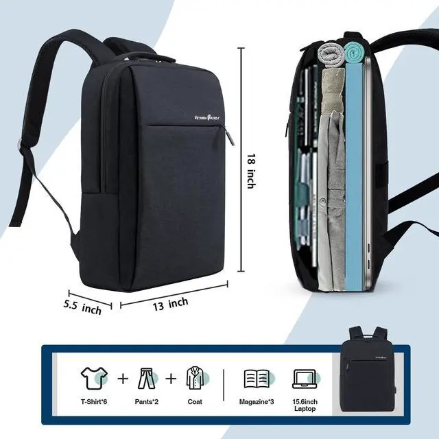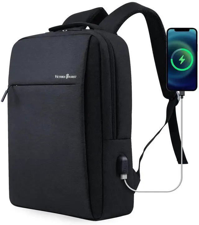 Victoriatourist Laptop Backpack 17 Inch, Business Slim Durable Laptops Travel Backpacks with USB Charging Port, College Backpacks Computer Bag Gifts for Men and Women Fits Notebook (Black)