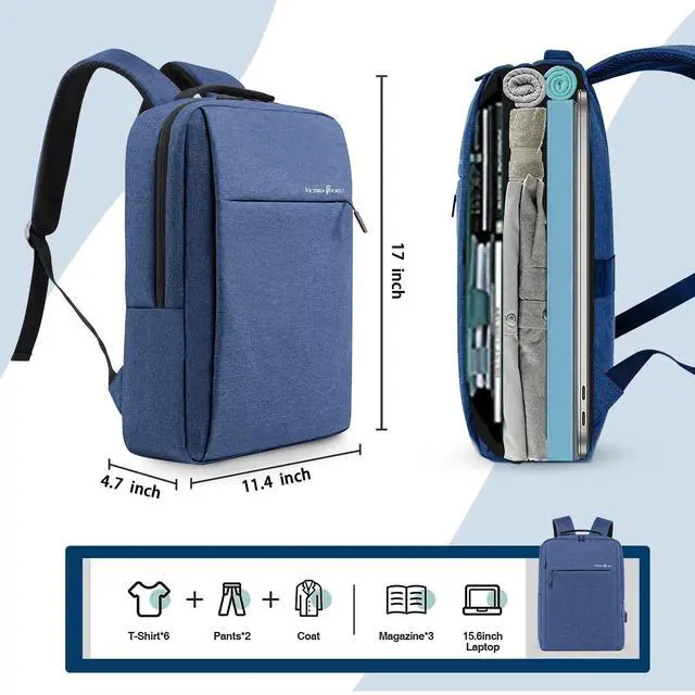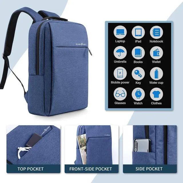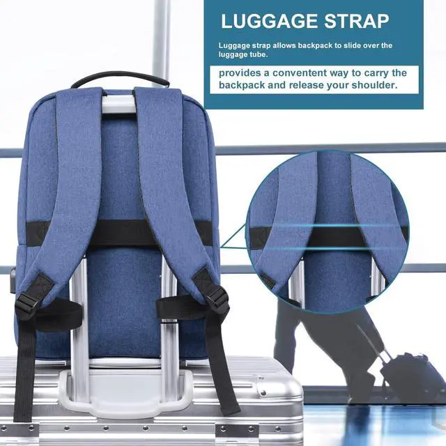 STORAGE SPACE&POCKETSOne separate laptop compartment hold 15.6 Inch Laptop as well as 15 Inch, 14 Inch and 13 Inch Laptop. One spacious packing compartment roomy for daily necessities, tech electronics accessories and a bunch of other items, make your items organized and easier to find. ^^ FUNCTIONALA luggage strap allows backpack to fit on luggage/suitcase, slide over the luggage upright handle tube for easier carrying. Well made for international airplane travel and day trips as a travel gift for men. ^^ USB PORT DESIGNWith built in USB charger outside and a built-in charging cable inside, this USB backpack offers you a more convenient way to charge your phone while walking.