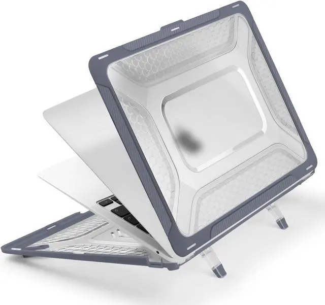 Batianda Protective Case for MacBook Air 13 inch 2021 2020 Release A2337 M1 A2179 A1932 Model Touch ID, Heavy Duty Honeycomb Hard Shell with Slim TPU Bumper and Fold Kickstand & Keyboard Cover, Gray